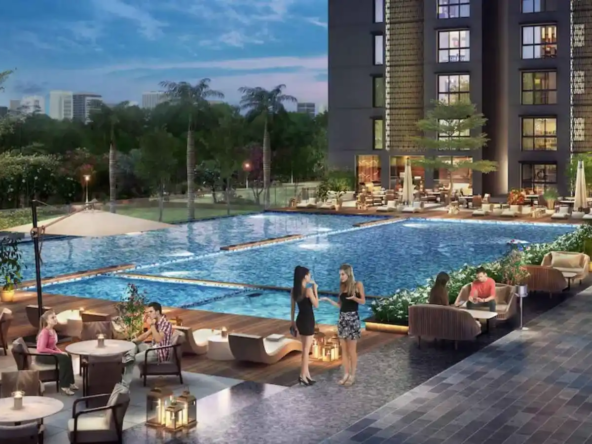 Perfectly situated near the thriving Manyata Tech Park, Purva Atmosphere offers residents an unparalleled living experience in North Bengaluru. The centerpiece of the project is the Sky Club, nestled on the 34th floor. This unique feature connects the central tower to the landscaped terraces of the other two towers, creating an expansive community space. Here, residents can enjoy mesmerizing sky gardens, recreational decks, play areas, and panoramic vistas that offer breathtaking views of the cityscape. The glass sky bridge and cantilever viewing areas are innovative elements that enhance the already spectacular experience.