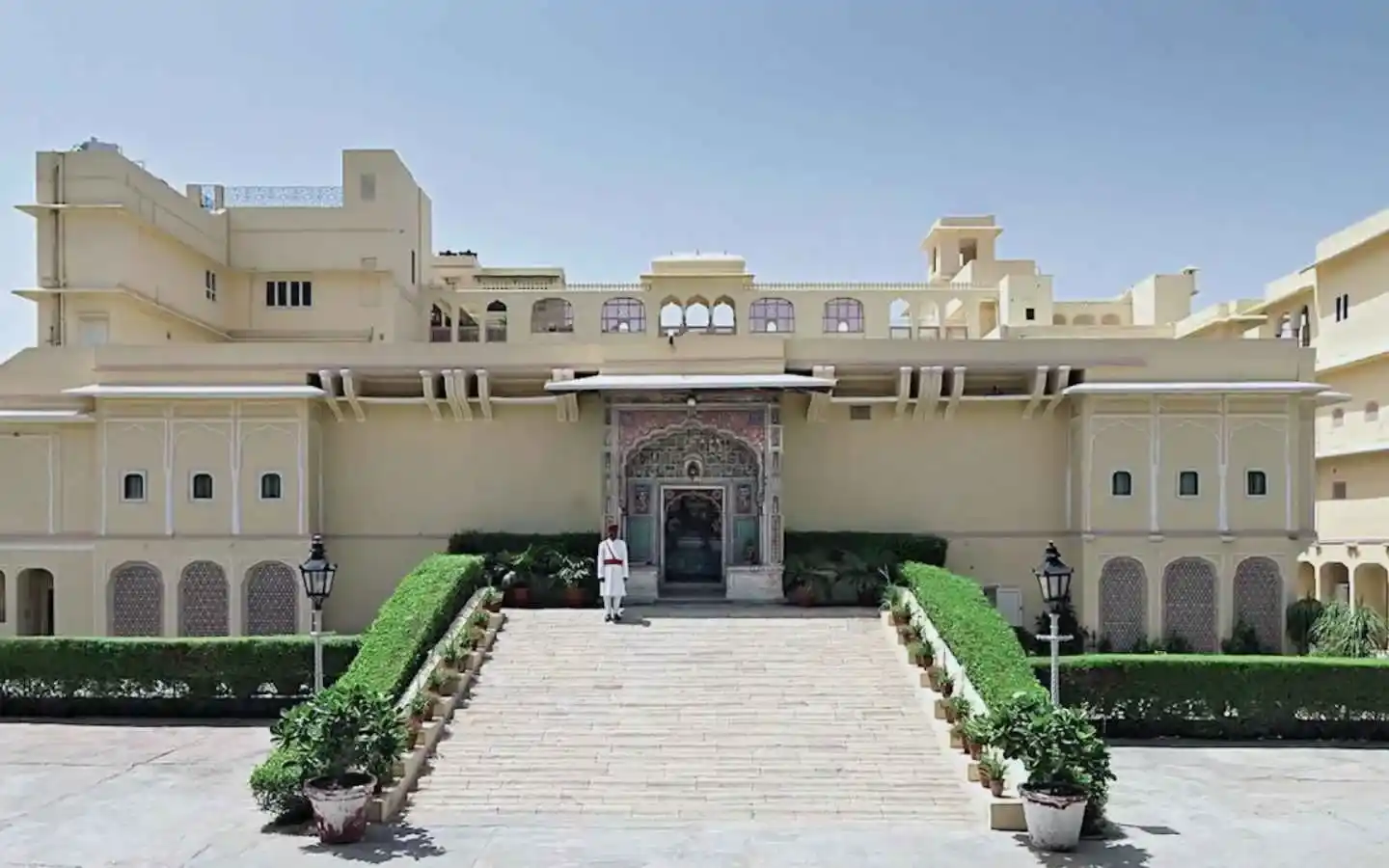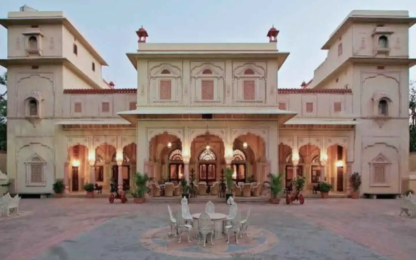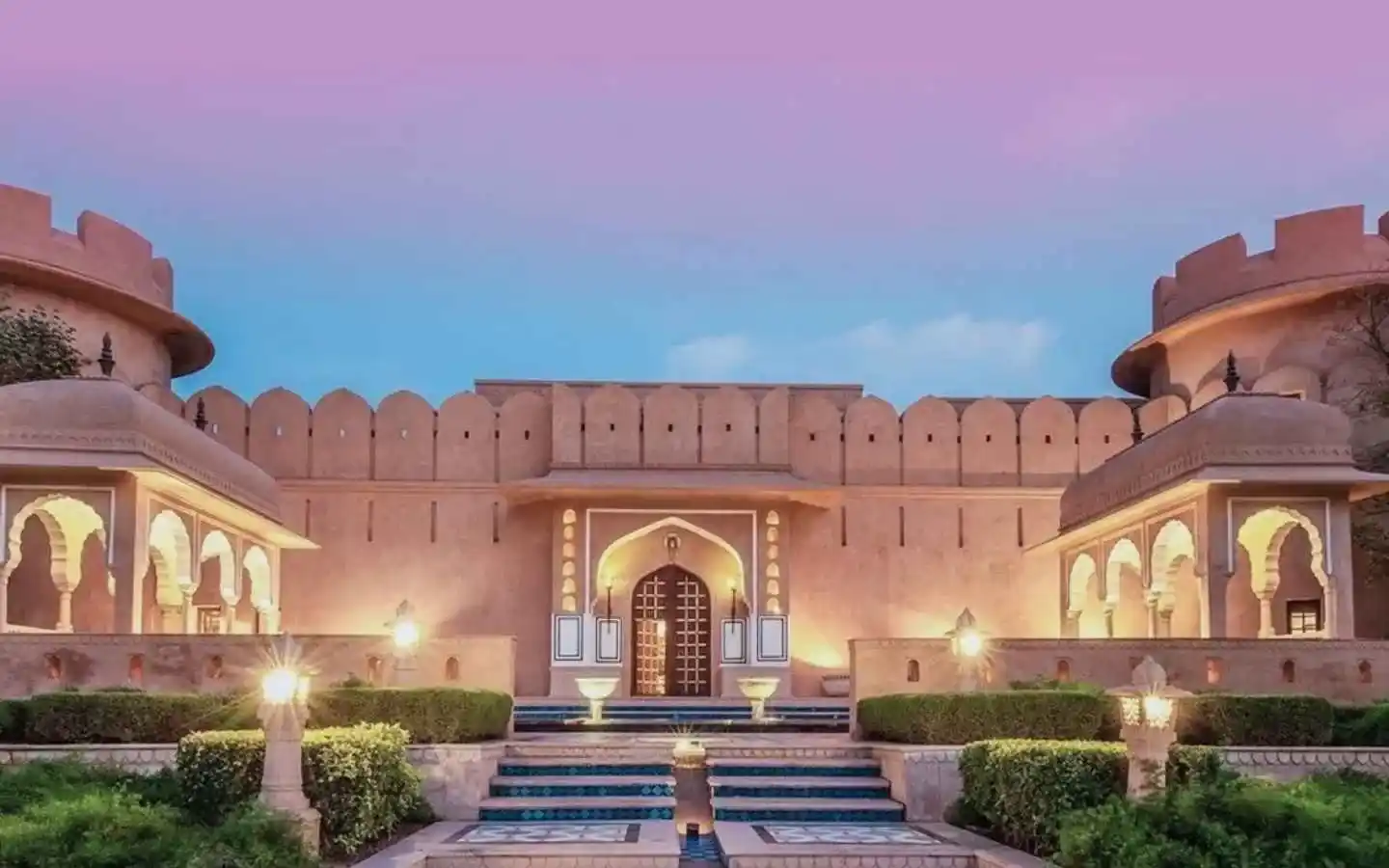 - Rajput palace-inspired façade with contemporary interiors