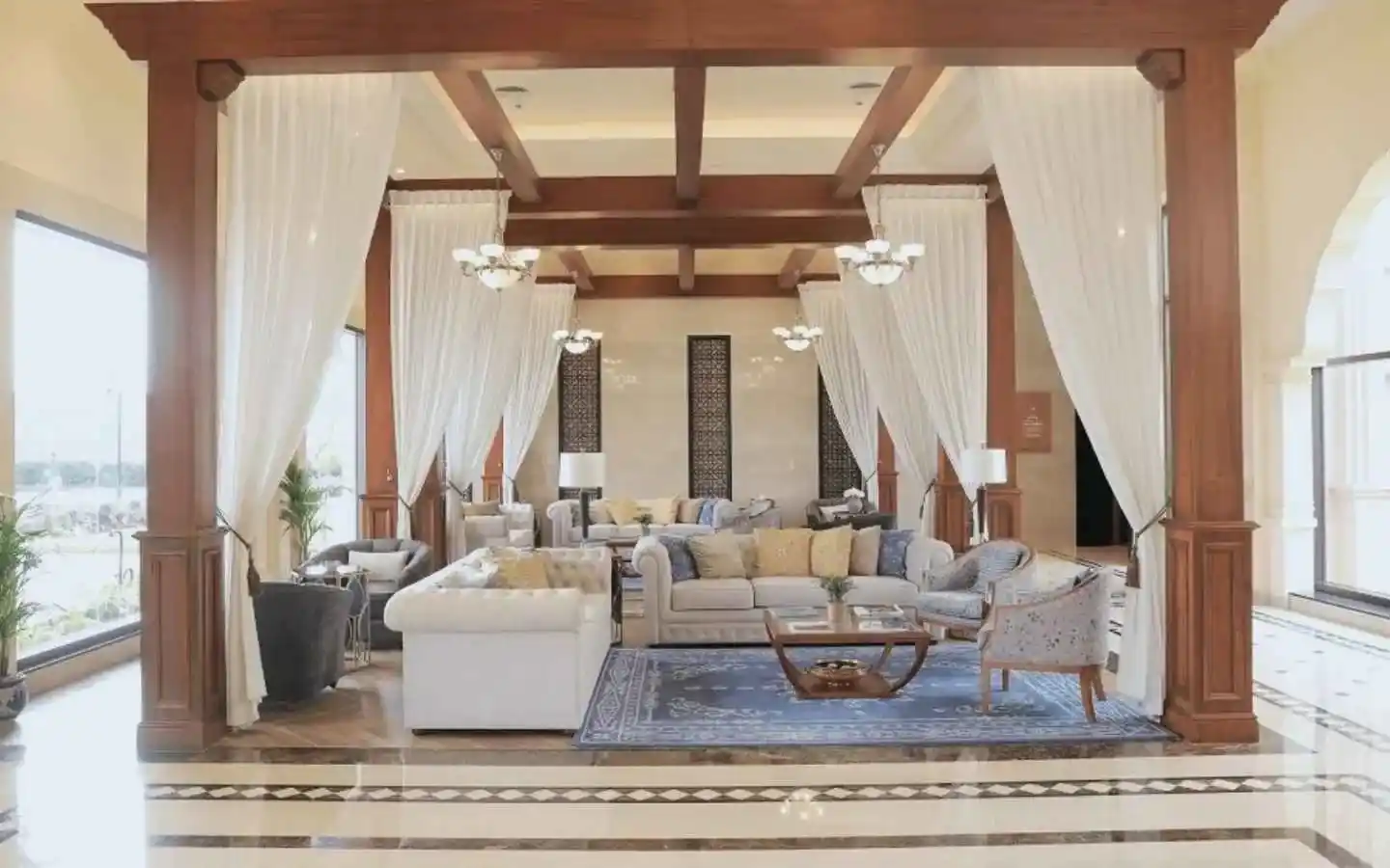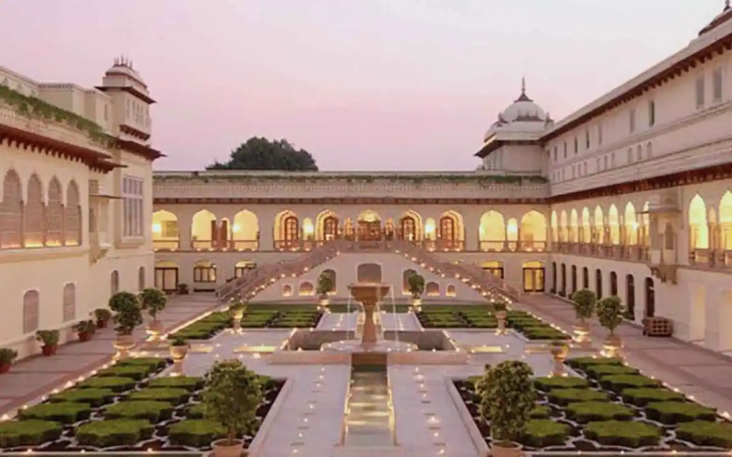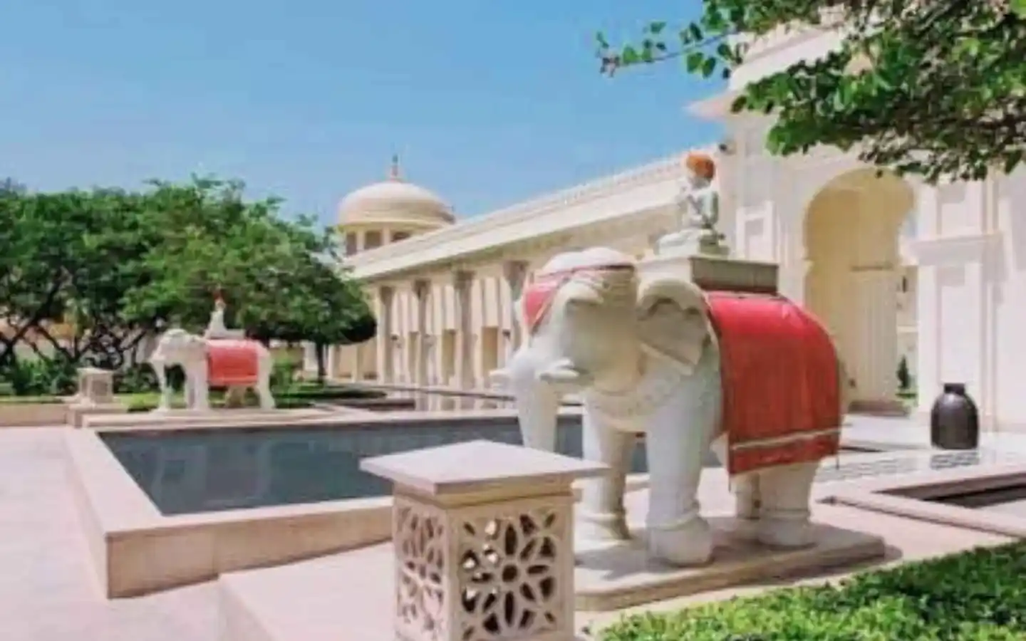 - Rajput palace-inspired façade with contemporary interiors